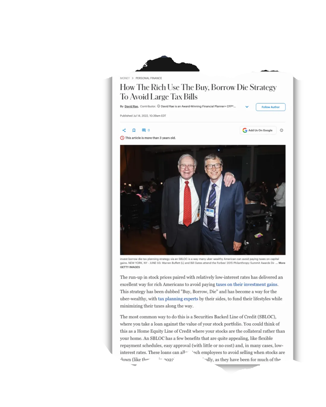 Major publications, including Forbes and Bloomberg, have documented how high-net-worth individuals use these rules to legally reduce or defer taxes. This is not a loophole or a new tactic. It reflects how the U.S. tax system has operated since the post–Great Depression era.
